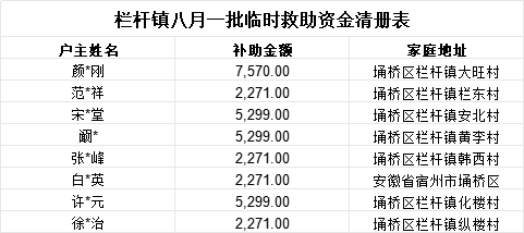 【资金发放】栏杆镇2024年8月临时救助资金情况