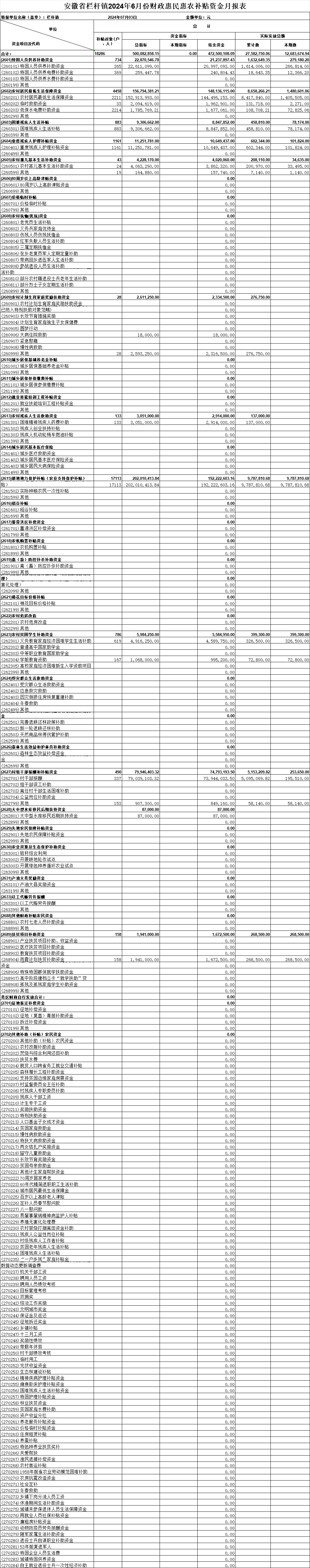 栏杆镇2024年6月份财政专项资金分配结果