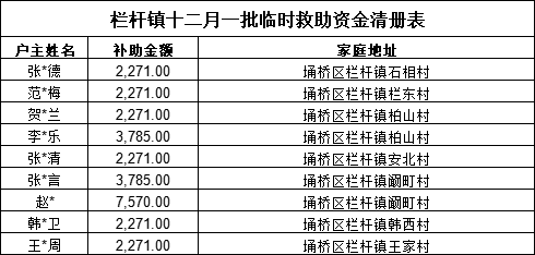 【资金发放】栏杆镇2024年12月临时救助资金情况