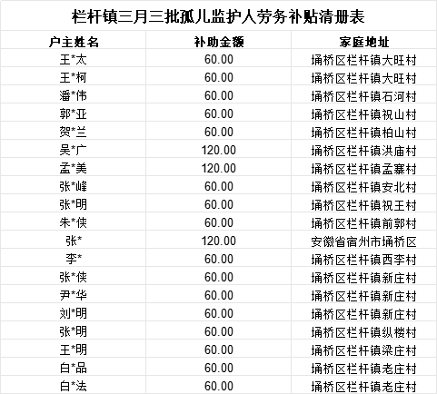 【孤儿补助】栏杆镇2025年3月发放孤儿监护人劳务补贴情况