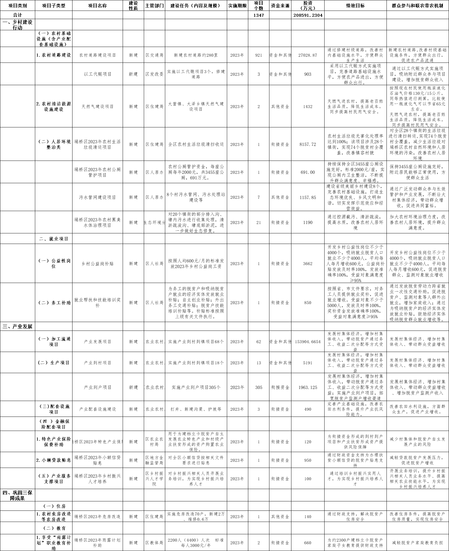 埇桥区2023年巩固拓展脱贫攻坚成果和乡村振兴项目库汇总表