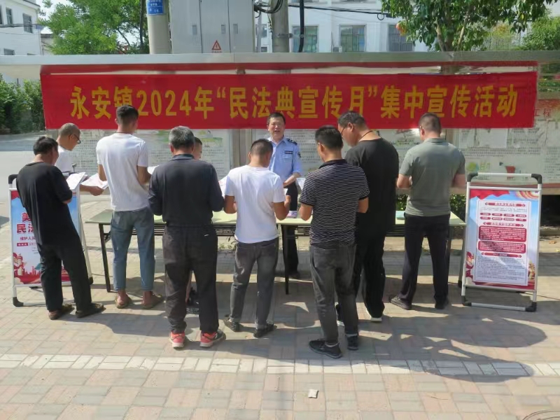 今年5月28日是《中华人民共和国民法典》颁布四周年纪念日,5月,也是我国第四个“民法典宣传月”,今年民法典宣传月的主题是“美好生活·民法典相伴”。5月17日上午,永安镇组织综治中心、司法所、民政所、社保所等部门在永安镇中心大街,集中开展民法典宣传活动,活动现场通过悬挂宣传横幅,摆放宣传台,发送民法典宣传彩页,宣传解答法律咨询等方式,向过往群众宣讲了《中华人民共和国民法典》,使广大群众了解到这是我国第一部以法典命名的法律,于2021年1月1日起施行。在法律体系中居于基础性地位,也是市场经济的基本法。它涵盖了物权、合同、人格权、婚姻家庭、继承、侵权责任等多个方面的内容,被称为“社会生活的百科全书”。此次宣传收到了很好的社会宣传效果。