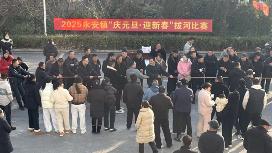 为庆祝2025年元旦佳节,丰富全镇群众的精神文化生活,增强凝聚力与团队协作精神,12月31日下午,永安镇举办了第二届“庆元旦·迎新春”拔河比赛。此次活动吸引了来自全镇各个村及单位共17支队伍参与,现场气氛热烈,展现了广大群众积极向上、团结奋进的精神风貌。