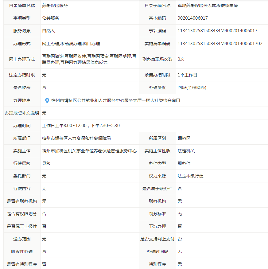 【养老保险服务】军地养老保险关系转移接续申请