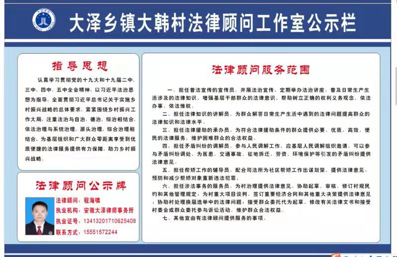 大泽乡镇大韩村法律服务