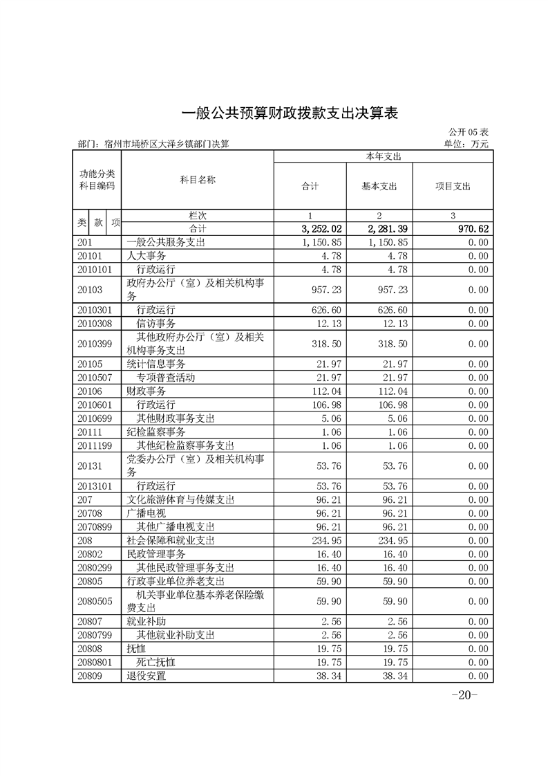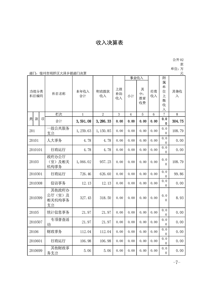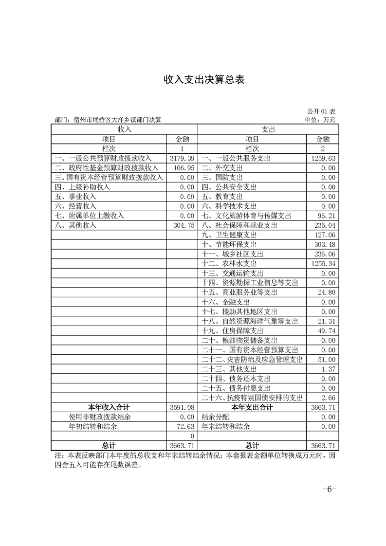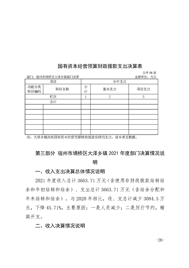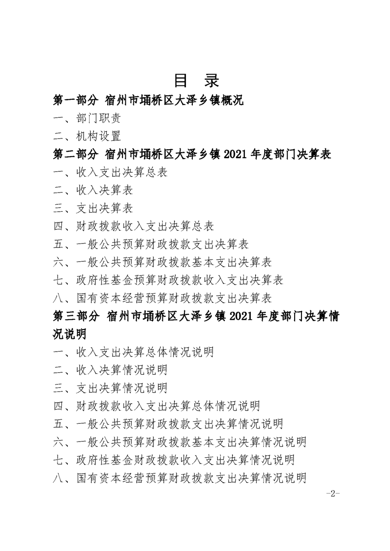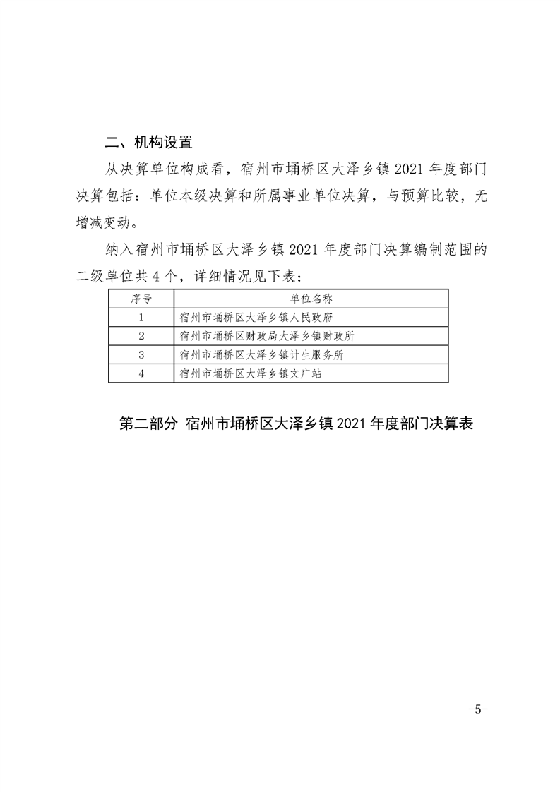 宿州市埇桥区大泽乡镇2021年度部门决算