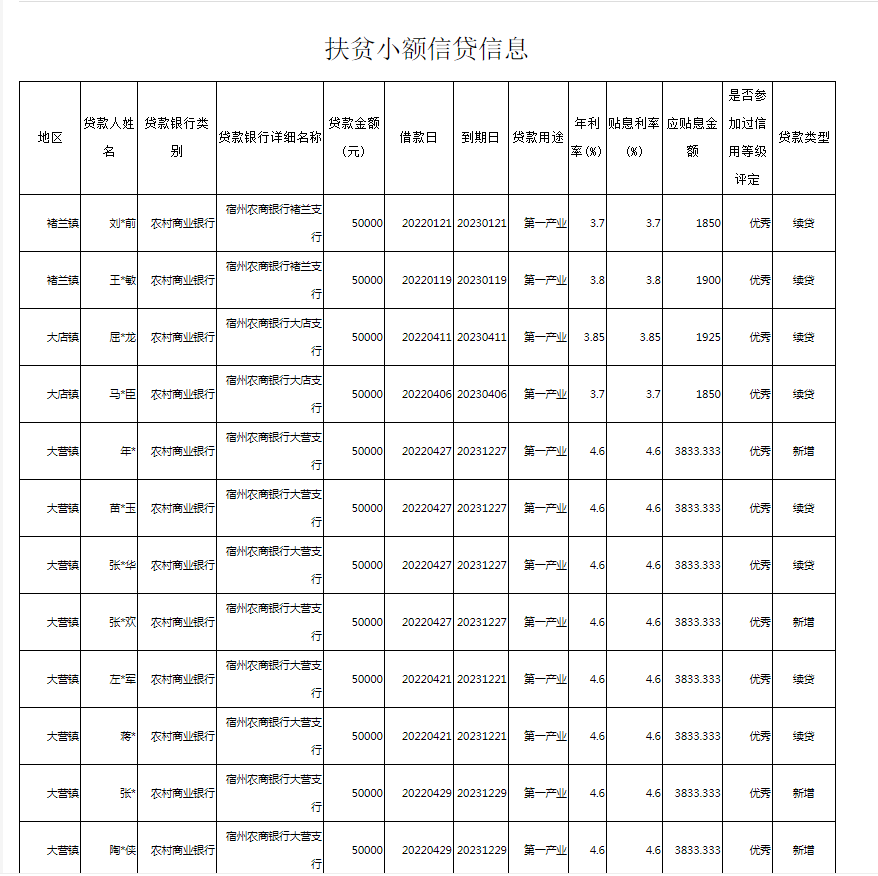 【精准扶贫小额贷款】埇桥区2022年第一季度小额信贷信息