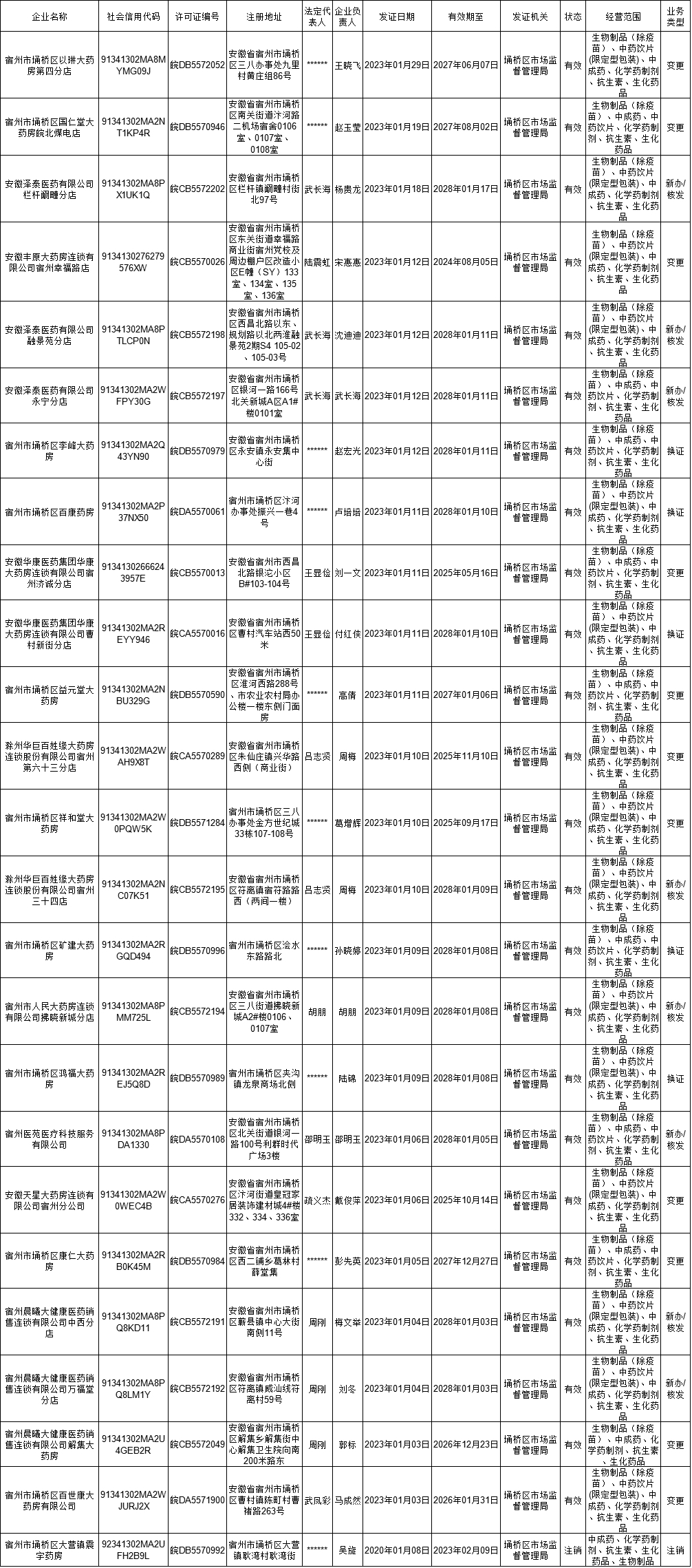 【基本信息】埇桥区市场监督管理局2023年1月药品零售许可企业情况