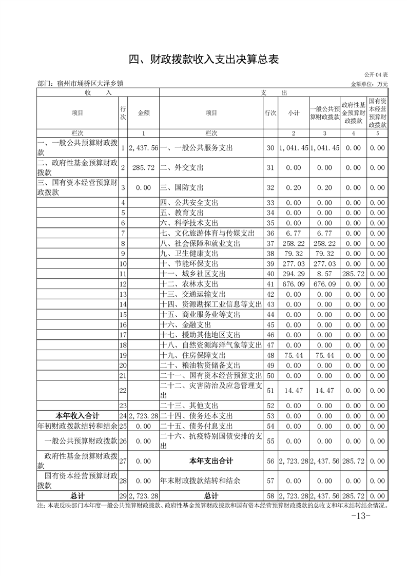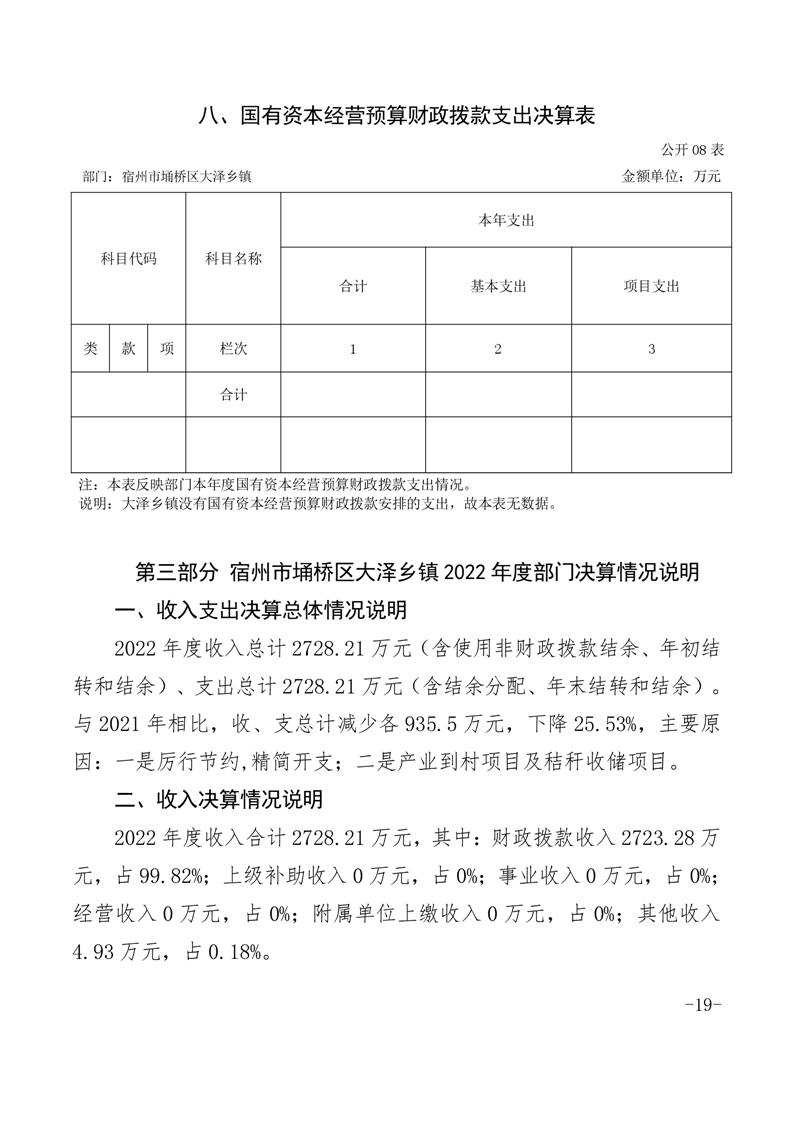 宿州市埇桥区大泽乡镇2022年度部门决算