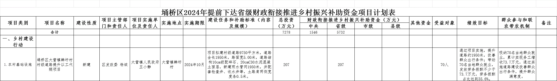 【资金项目】埇桥区2024年提前下达省级财政衔接推进乡村振兴补助资金项目计划表
