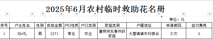 【临时救助】2025年6月大营镇农村临时救助发放清单