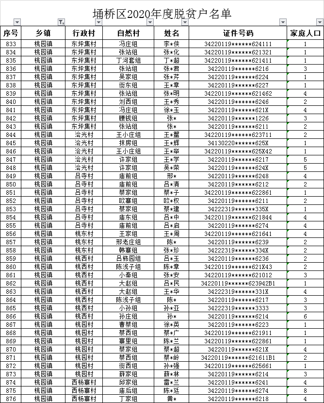 埇桥区2020年度脱贫户名单公告