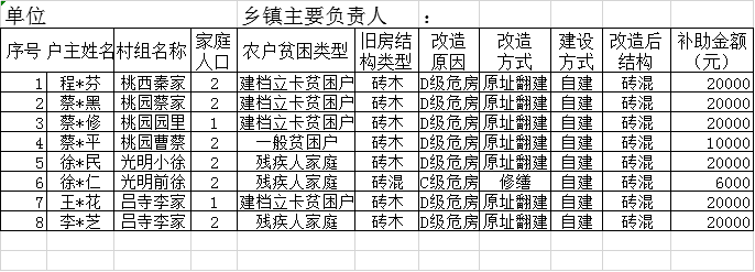 宿州市埇桥区桃园镇2020年度危房改造项目信息统计表