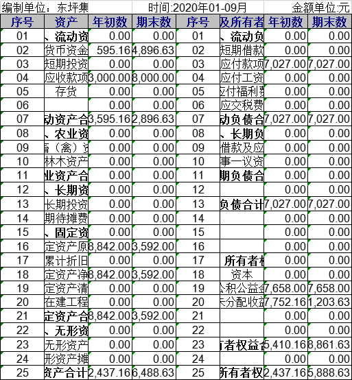 桃园镇东坪集村2020年1-9月资产负债表