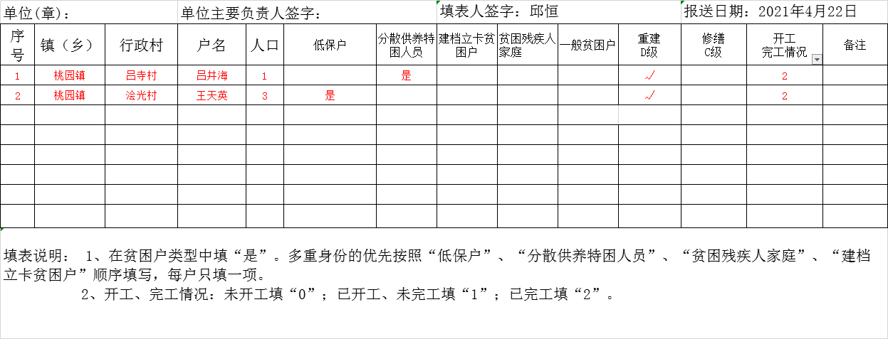 【任务分配】宿州市埇桥区桃园镇2021年农村危房改造详情表