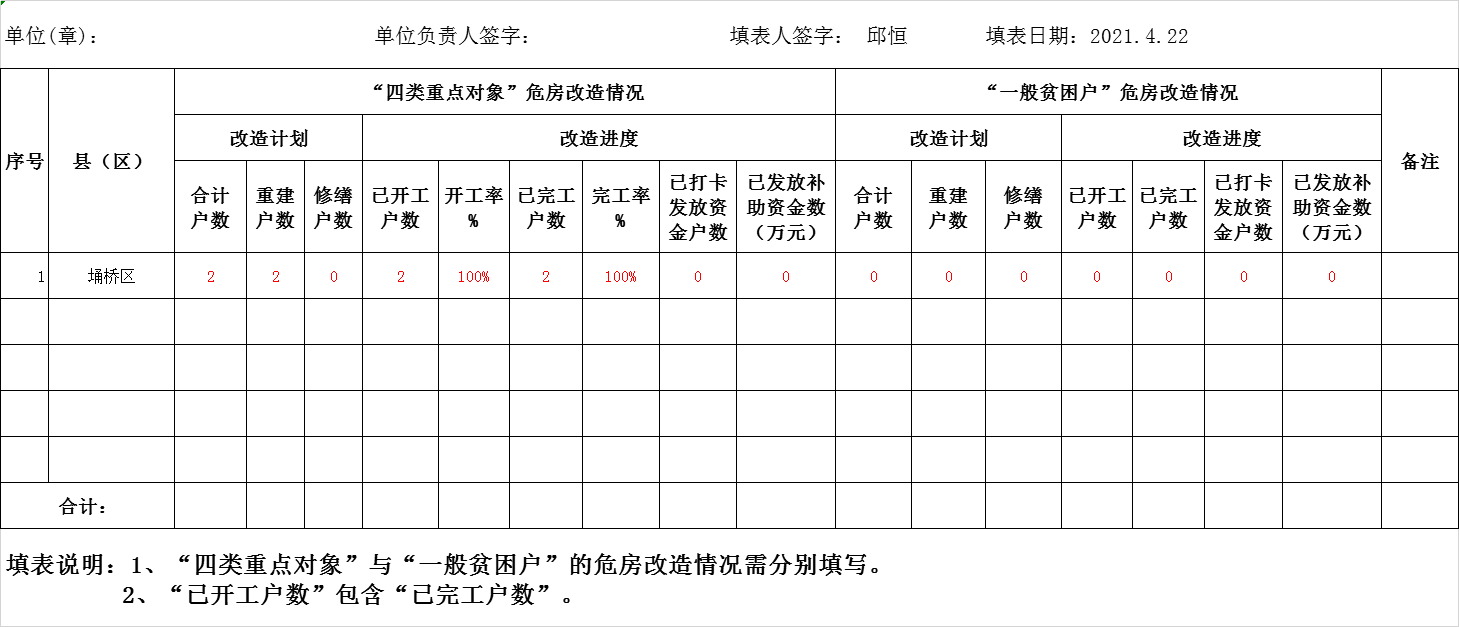 宿州市埇桥区桃园镇2021年农村危房改造进度统计表