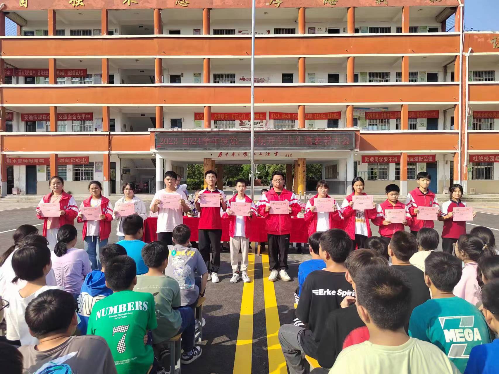 9月14日下午,宿州市桃园中学全体师生齐聚教学楼下,举行了2023年秋季开学典礼暨表彰大会。本次开学典礼由桃园中学教导主任范志德主持,学校领导班子成员前台就坐。