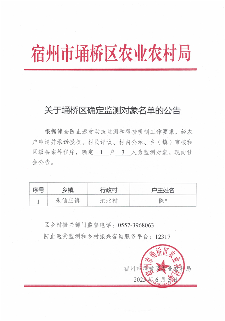 关于埇桥区确定监测对象名单的公告