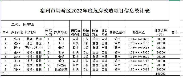 宿州市埇桥区杨庄镇2022年度危房改造项目信息