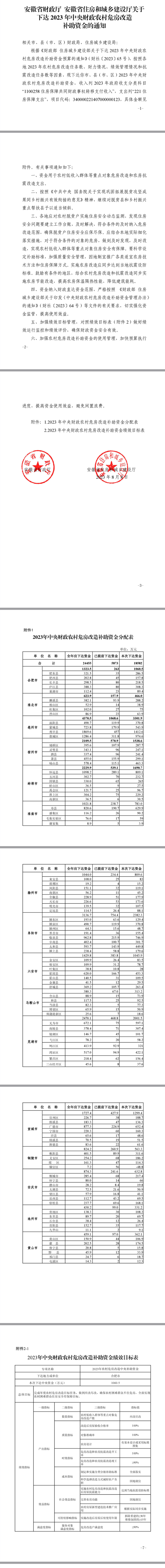 【文件政策】安徽省财政厅安徽省住房和城乡建设厅关于下达2023年中央财政农村危房改造补助资金的通知