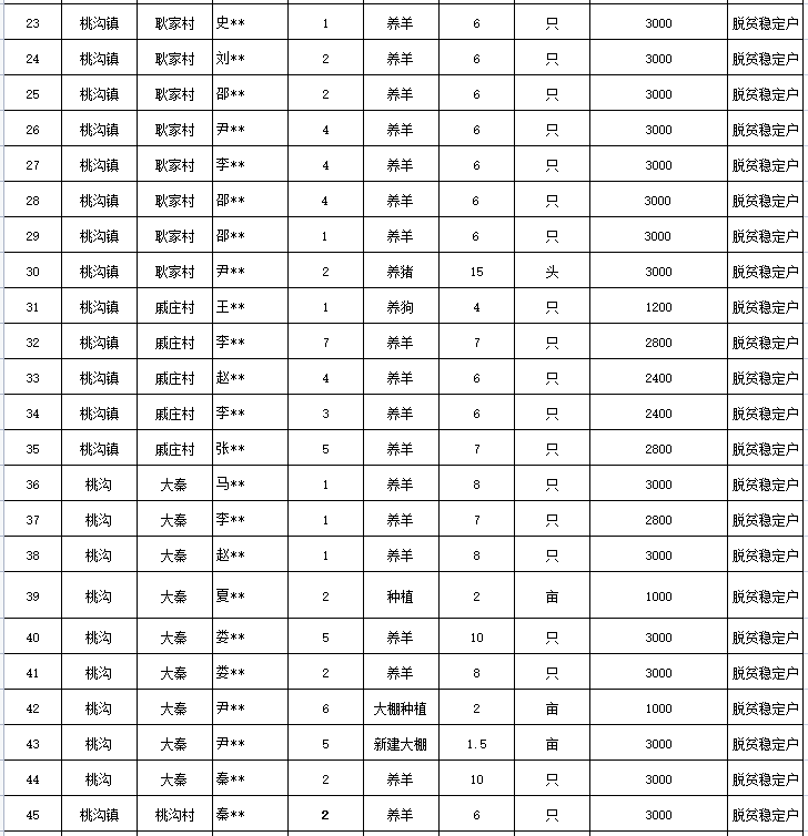 埇桥区桃沟镇2023年产业到户项目申请人花名册