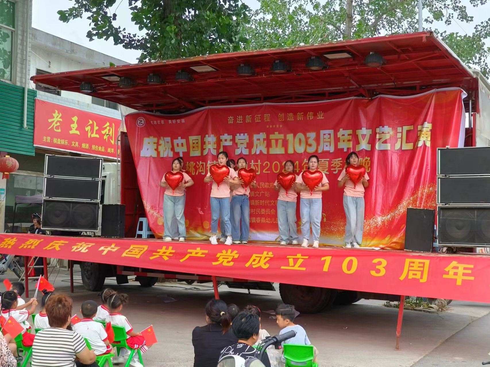 7月1日,为庆祝中国共产党成立103周年,桃沟镇人民政府宣传办、文化站、工会、妇联、桃沟春燕幼儿园联合组织开展了桃沟镇庆祝中国共产党成立103周年文艺汇演。