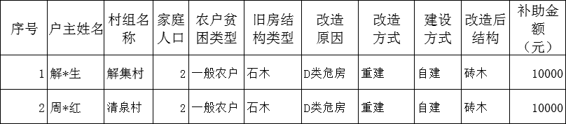 解集乡2020年度危房改造项目信息统计表(一般农户)