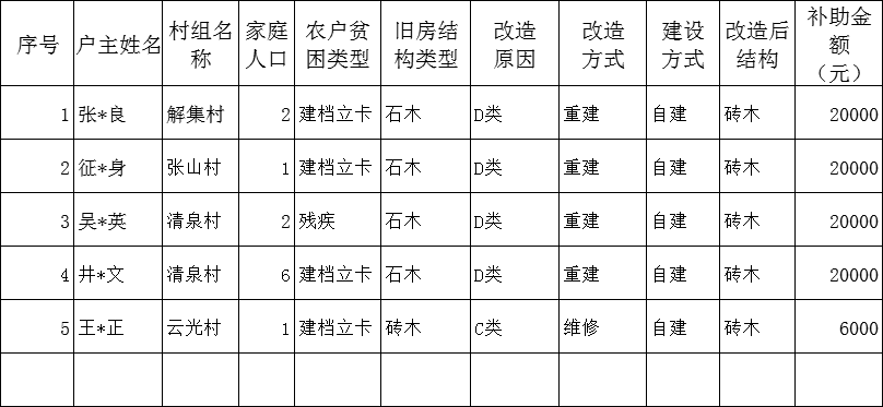 解集乡2020年度危房改造项目信息统计表(四类人员)