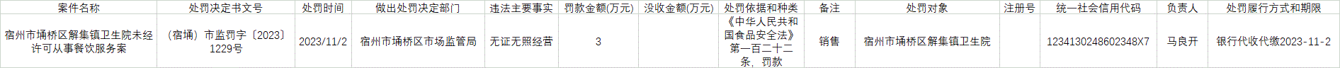 2023年第四季度食品药品生产经营监管行政处罚公示表