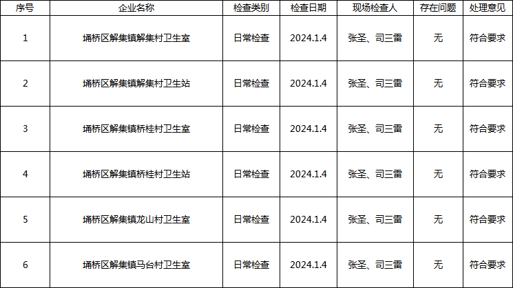 解集镇市场监督管理局2024年一季度医疗机构使用药品质量安全监督检查(药品)
