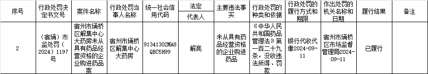 埇桥区解集镇2024年第三季度食品药品监管行政处罚公示表