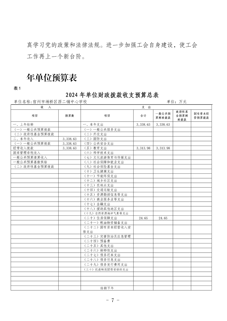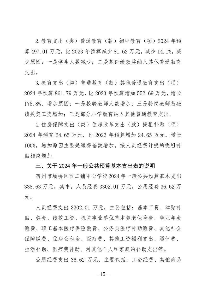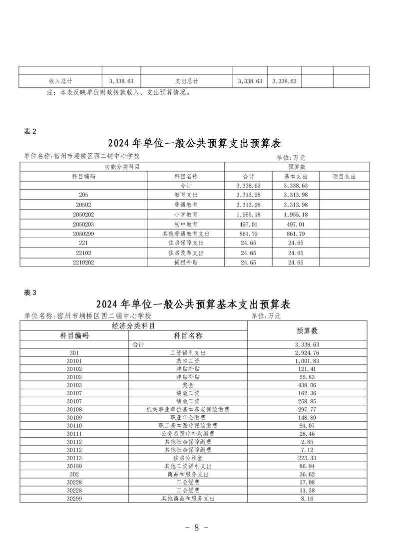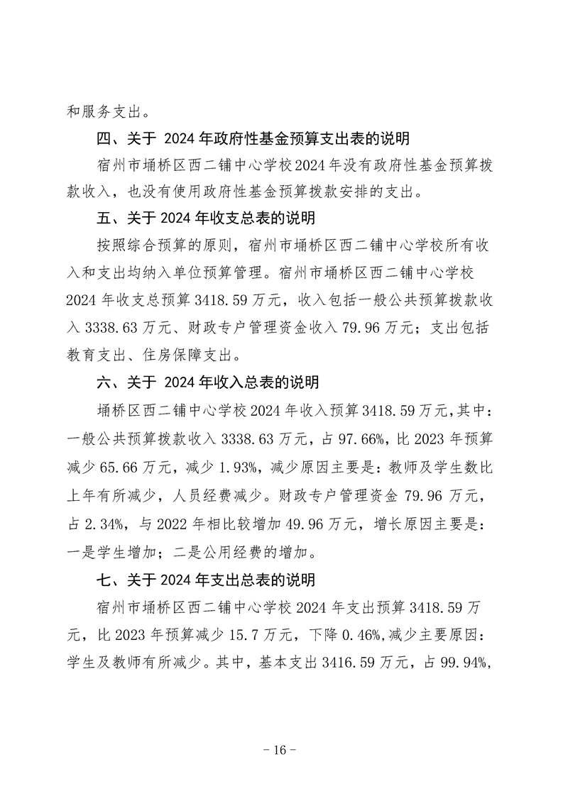 宿州市埇桥区西二铺中心学校2024年度单位预算