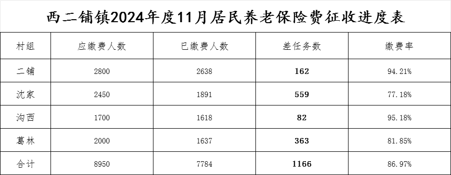 【居民参保信息】西二铺镇2024年11月居民养老保险费征收进度表