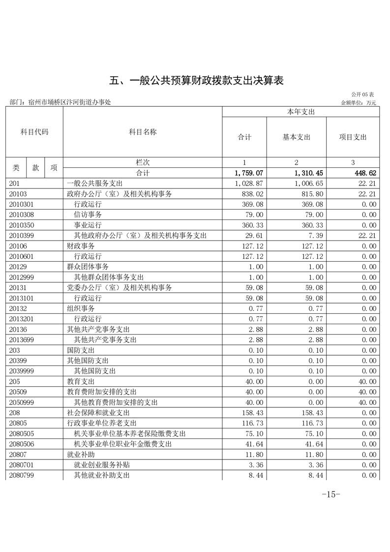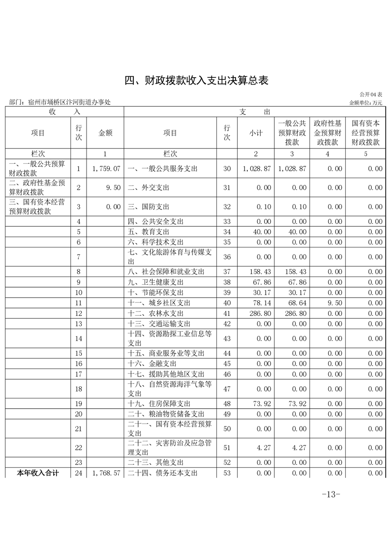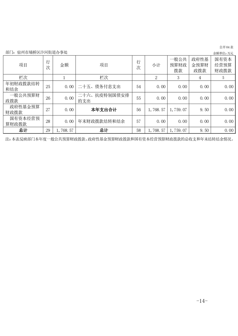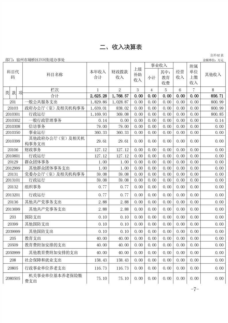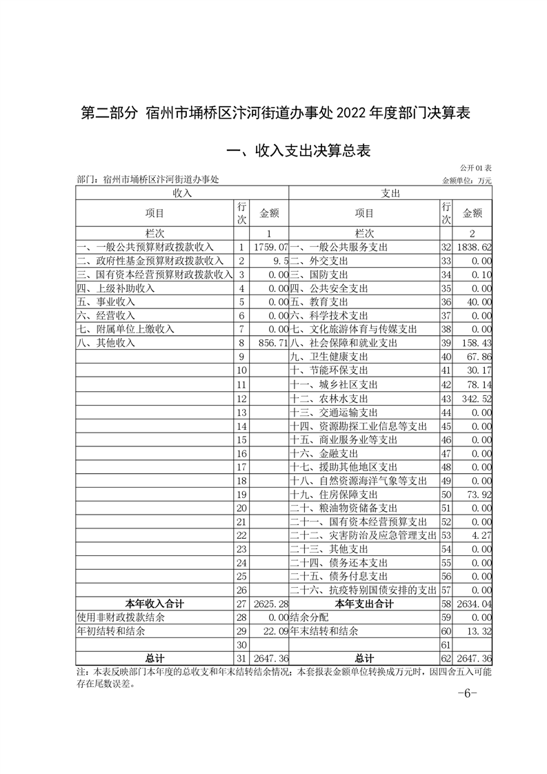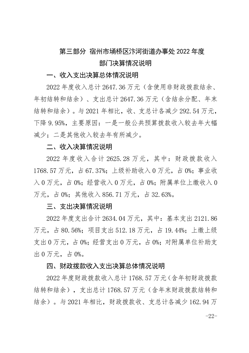 【部门决算】宿州市埇桥区汴河街道2022年度部门决算