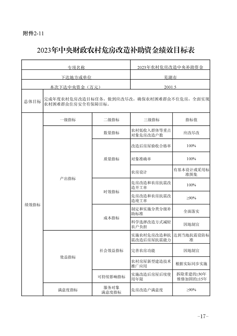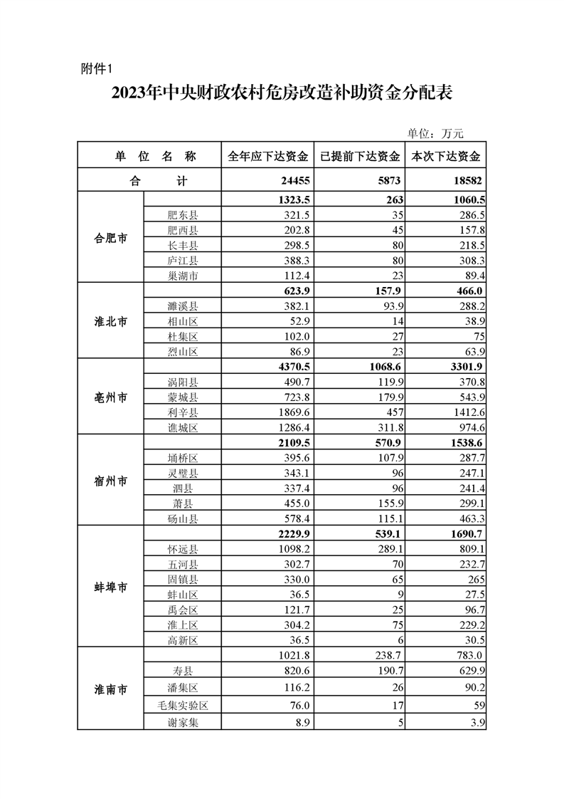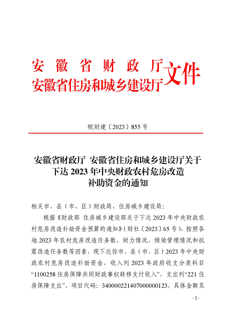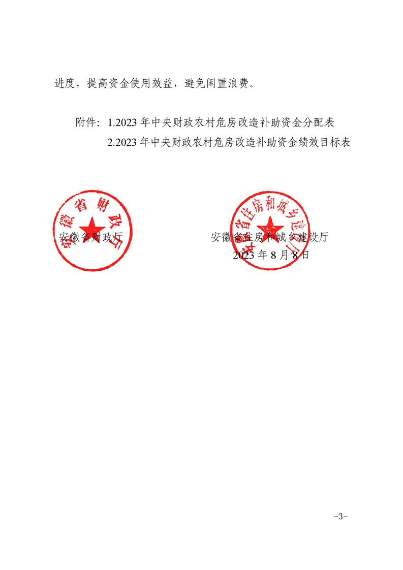 【文件政策】安徽省财政厅安徽省住房和城乡建设厅关于下达2023年中央财政农村危房改造补助资金的通知