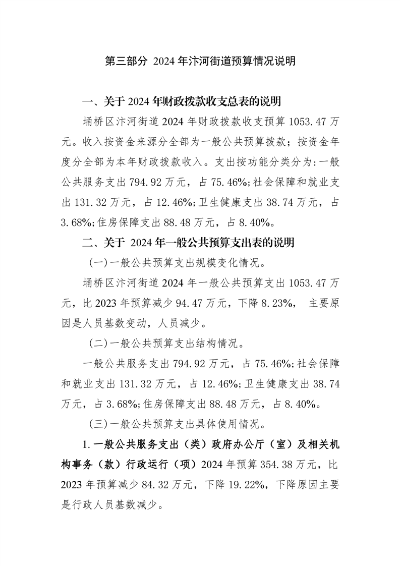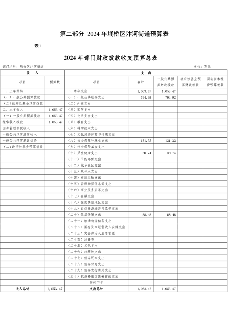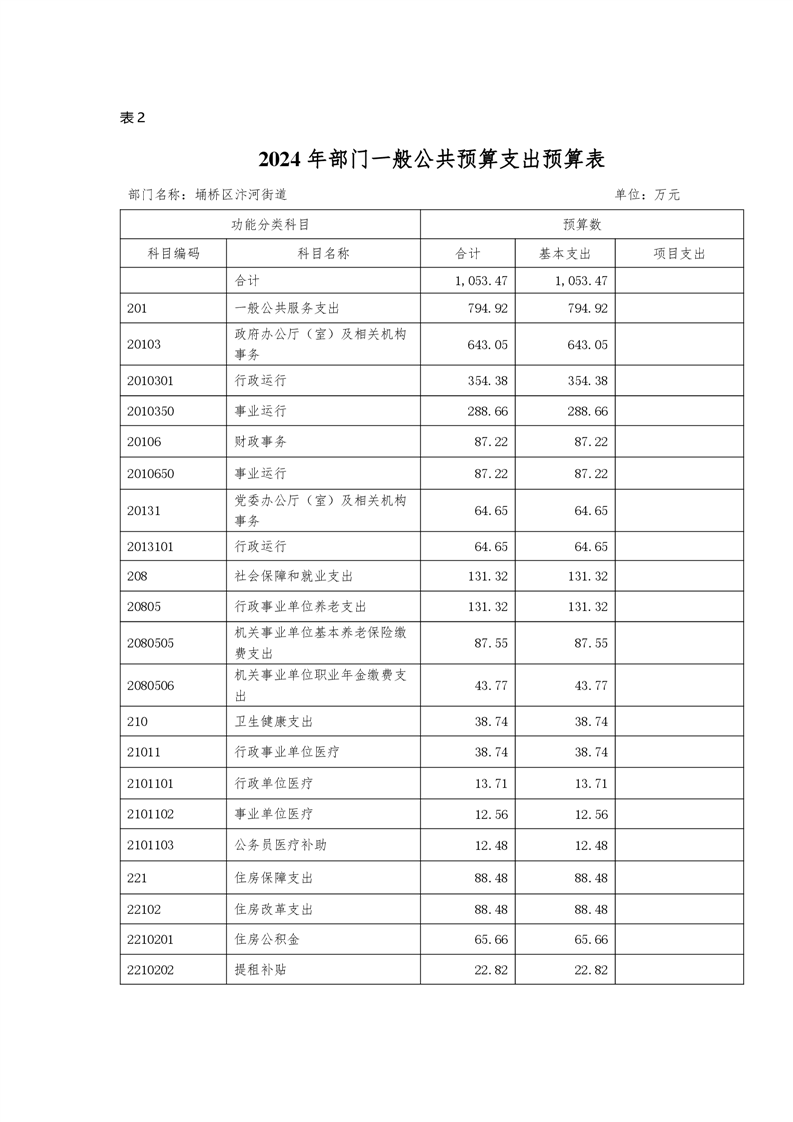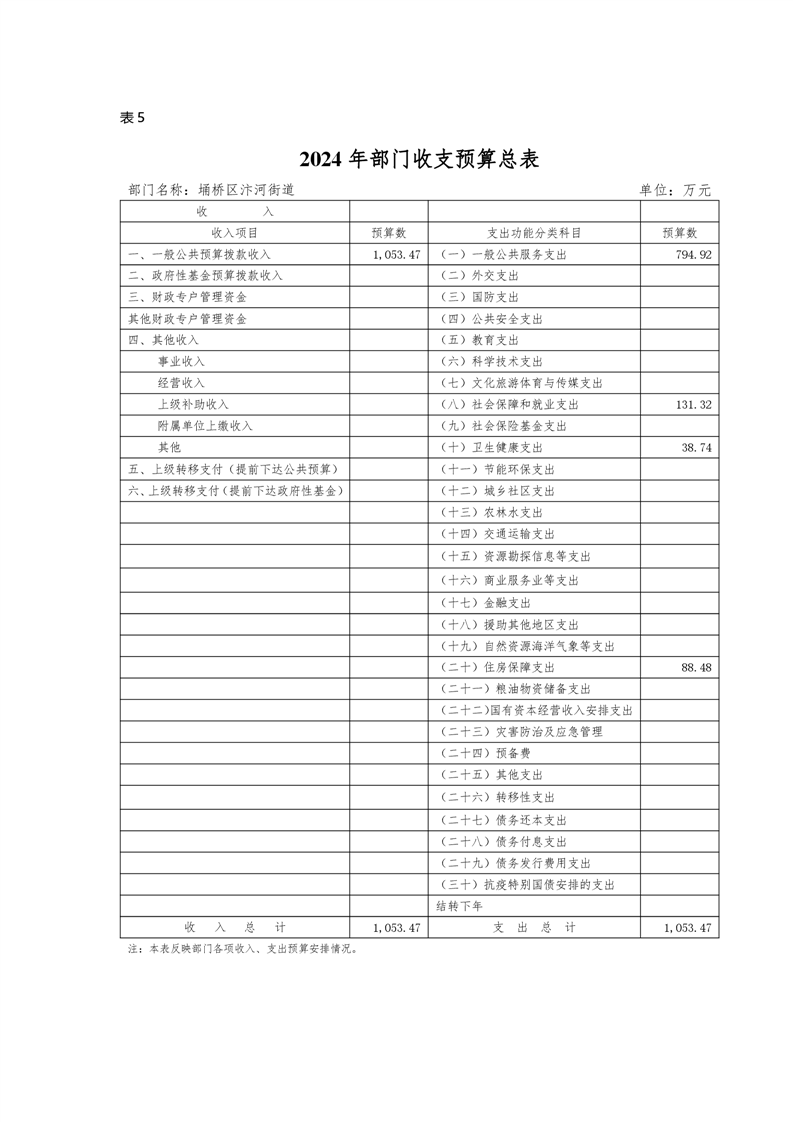 【部门预算】汴河街道办事处2024年度部门预算的批复