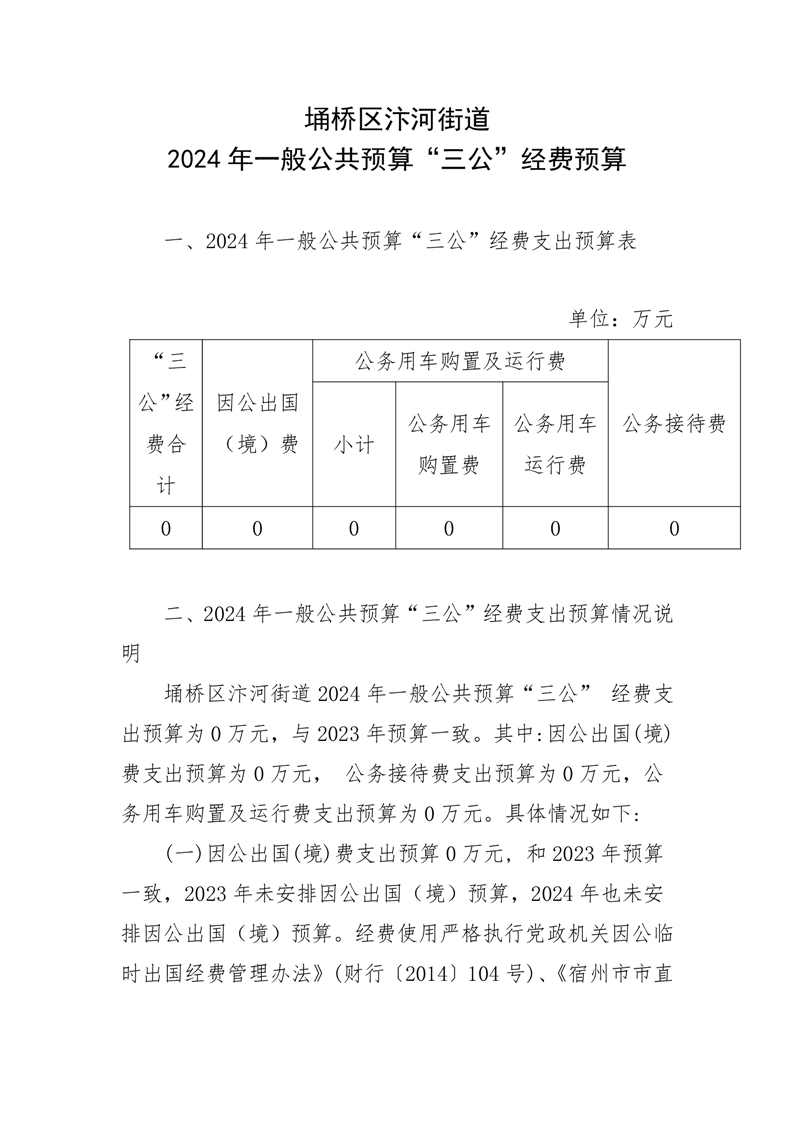 【年度经费预算】埇桥区汴河街道2024年一般公共预算“三公”经费预算