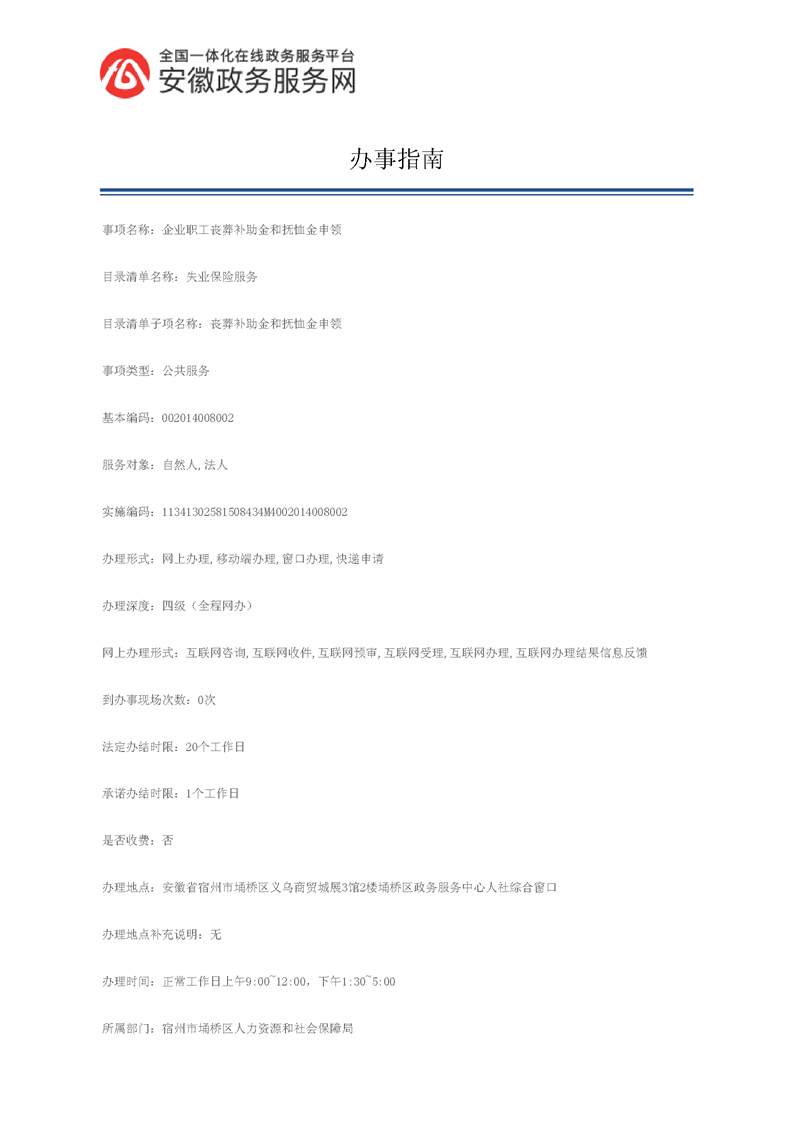 【办事指南】企业职工丧葬补助金和抚恤金申领