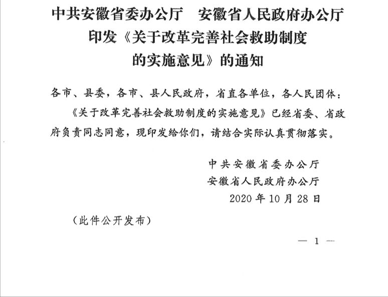 省委办公厅省政府办公厅印发《关于改革完善社会救助制度的实施意见》