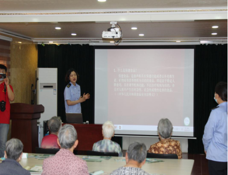 区市场监管局食品股工作人员举办了保健食品科普知识大讲堂,详细介绍了食品、保健食品相关法律法规,重点讲解保健食品与药品、普通食品的区别,列举了保健食品虚假广告及推销形式,以及如何正确的购买和食用保健食品等。讲座中,还播放了老年人预防欺诈视频,引导老年人树立正确的消费观,远离“包治百病”、“免费体检”、“免费旅游”等保健食品常见陷阱。