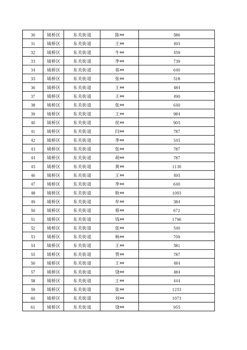 【城乡低保】东关街道2023年第二季度城乡低保发放花名册