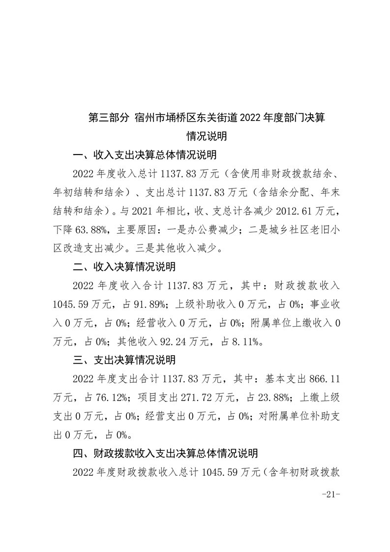 宿州市埇桥区东关街道办事处2022年度部门决算.doc