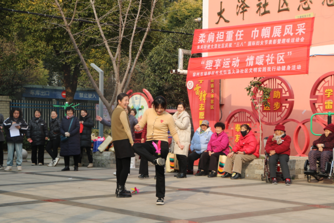 为营造欢乐祥和、积极奋进的节日氛围,更好地展现辖区妇女风采,营造健康向上、充满活力的精神面貌,3月7日下午,宿州市埇桥区东关街道大泽社区开展“趣享运动 情暖社区”文明实践我行动健身活动。