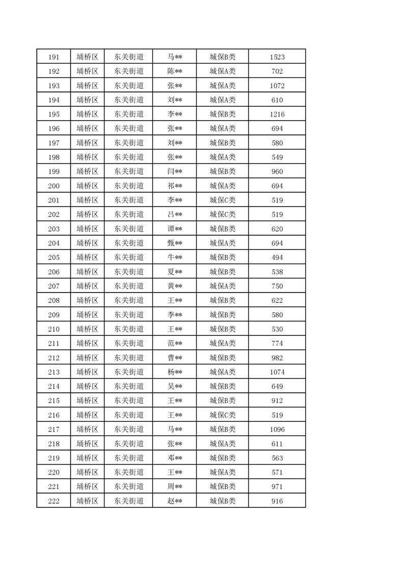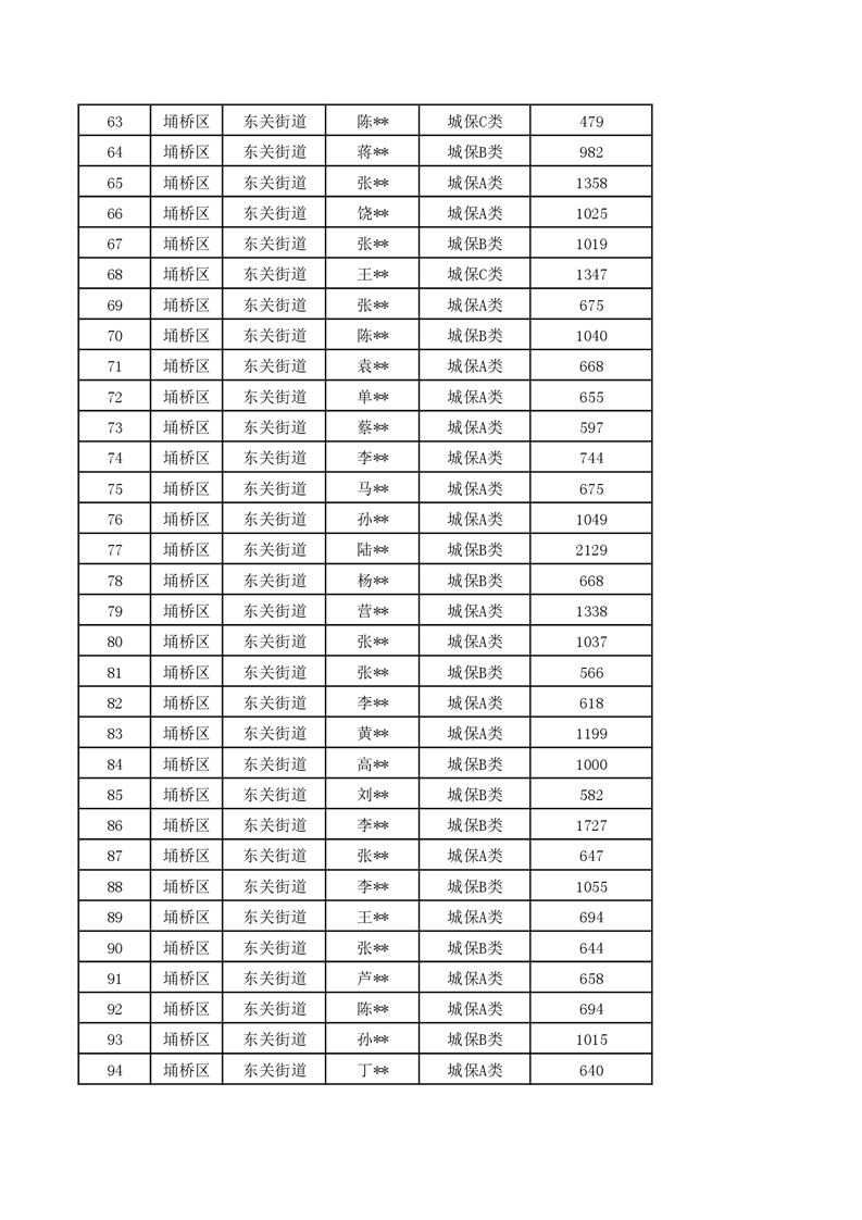 【城乡低保】东关街道2024年第一季度城乡低保发放花名册