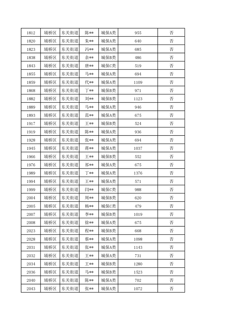 【城乡低保】东关街道2024年第二季度城乡低保发放花名册