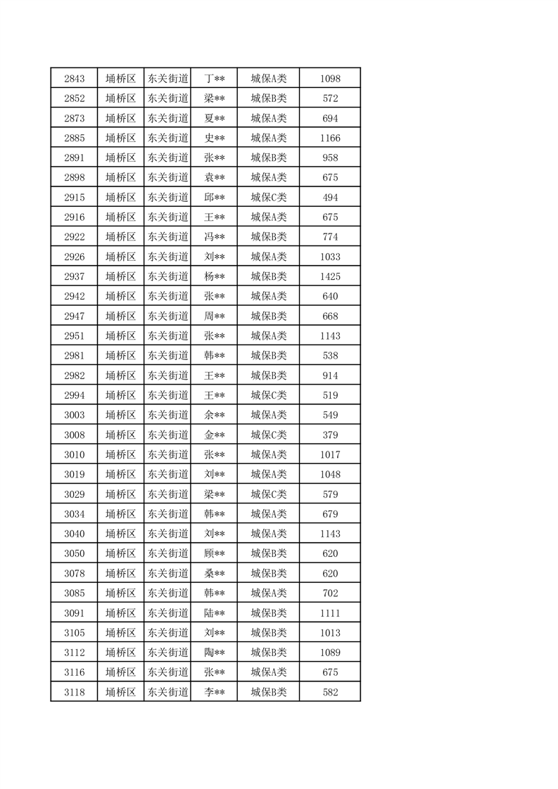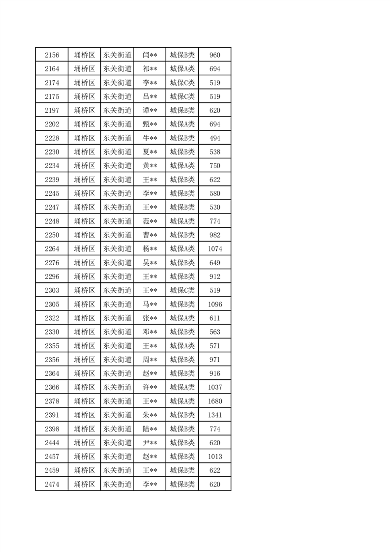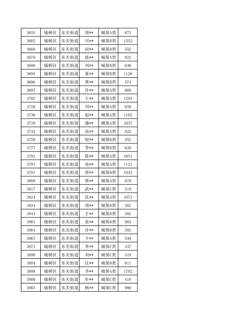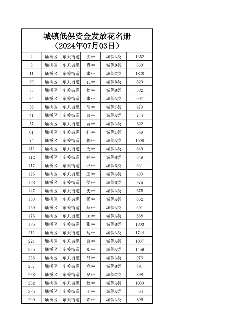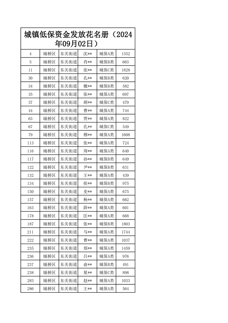 【城乡低保】东关街道2024年第三季度城乡低保发放花名册