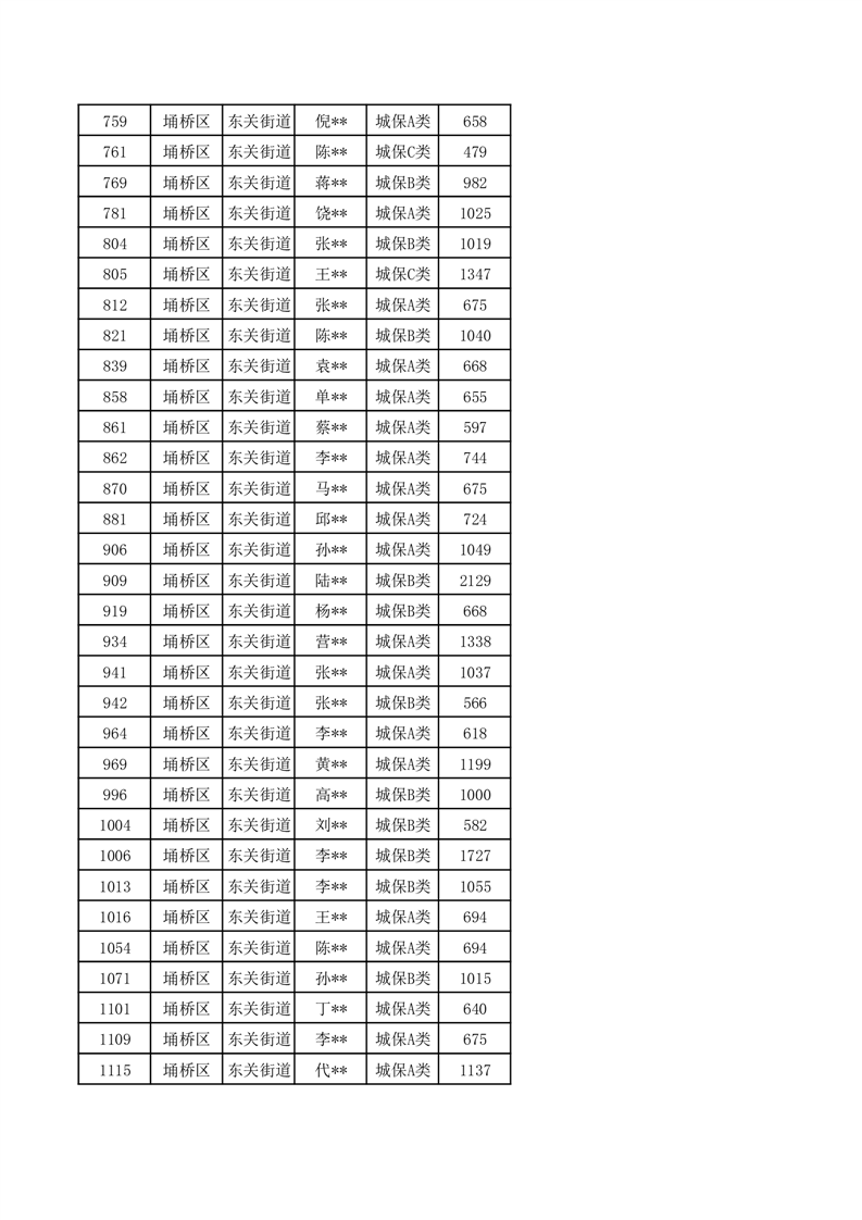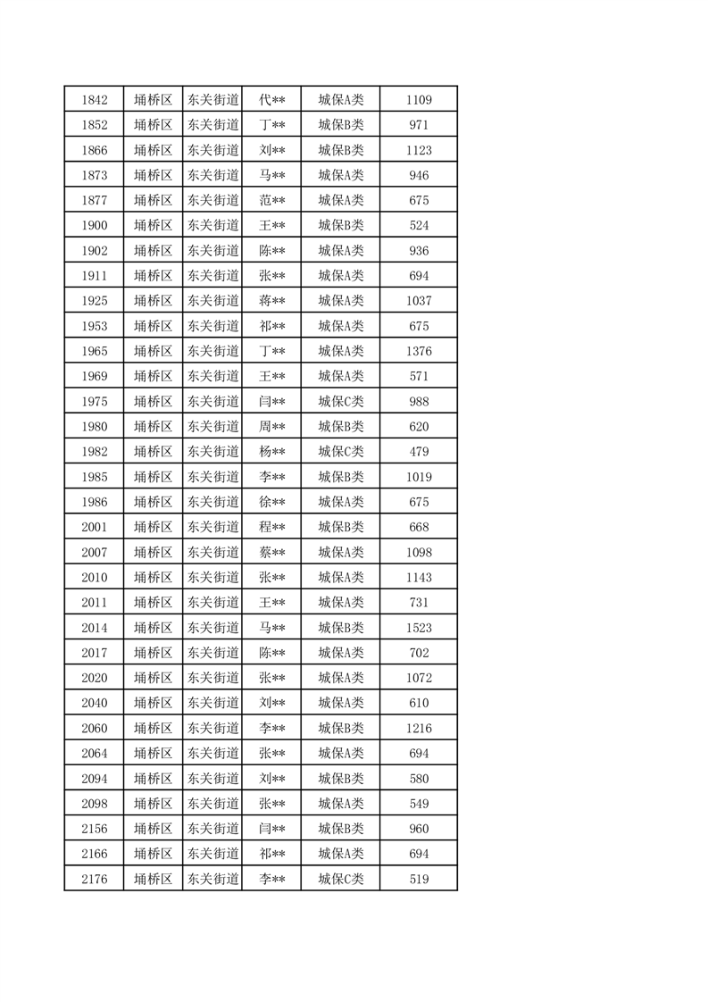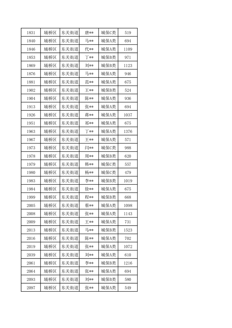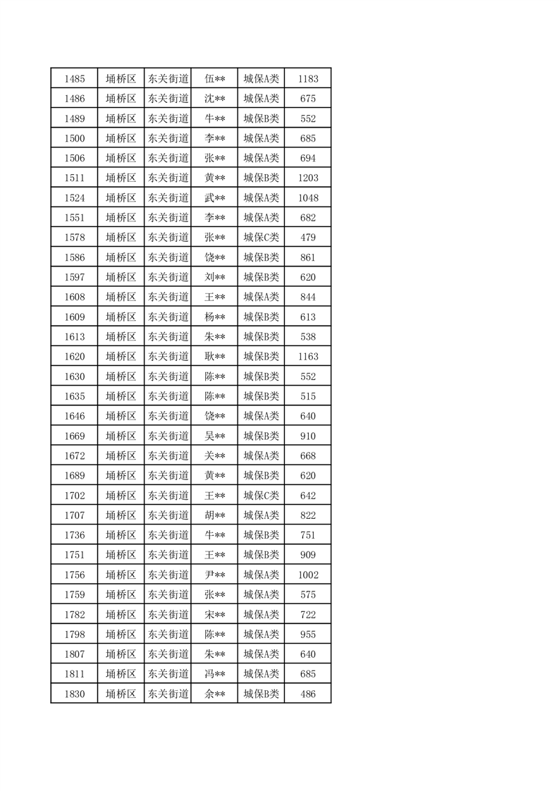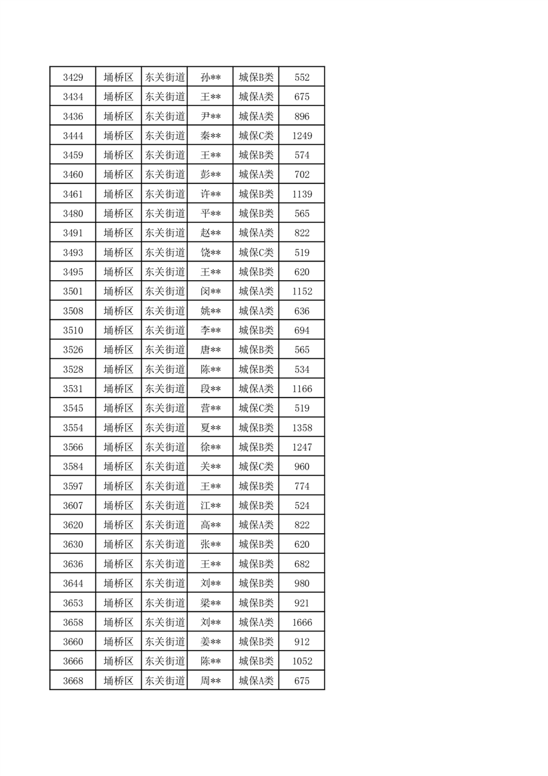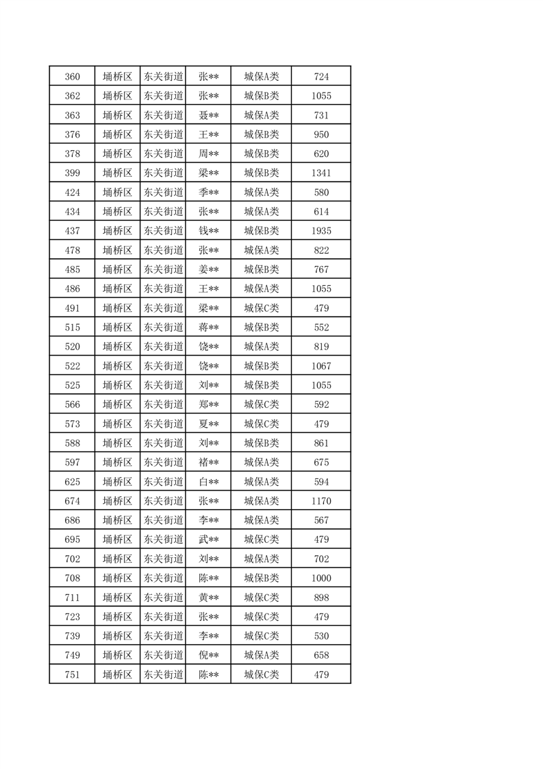 【城乡低保】东关街道2024年第三季度城乡低保发放花名册