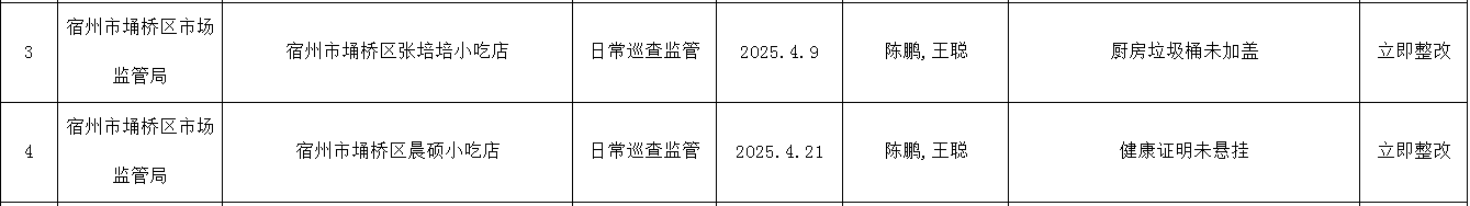 【检查结果】东关街道市场监管所2025年4月日常监管信息通告表