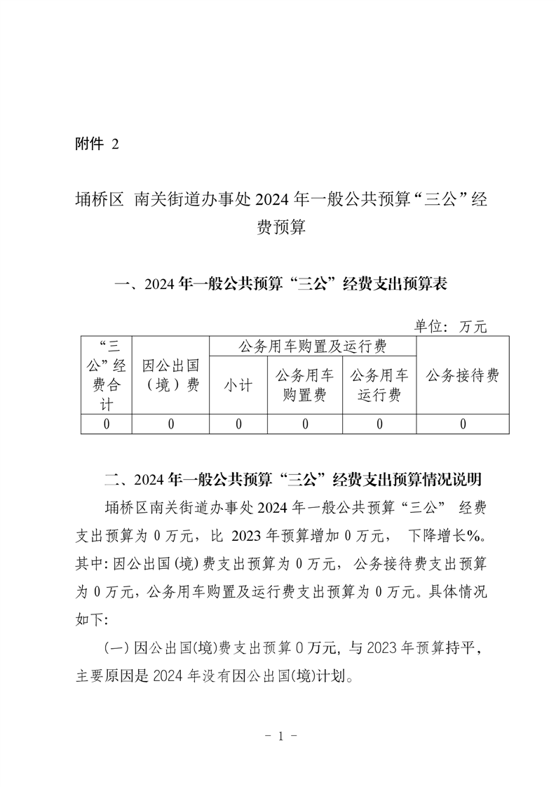 埇桥区南关街道办事处2024年一般公共预算“三公”经费预算