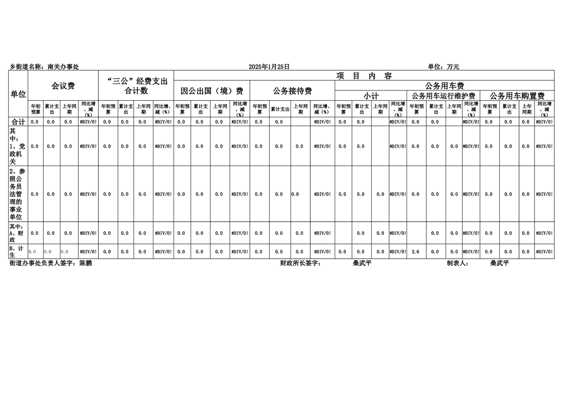 南关街道2025年1月“三公”经费和会议费支出情况统计表